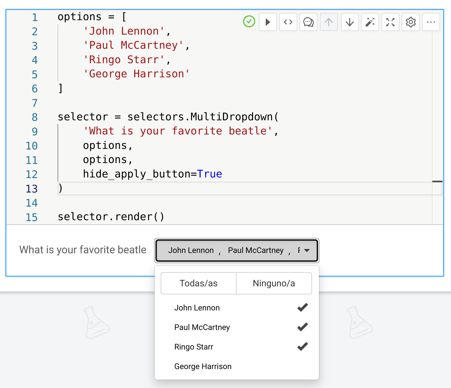 Version 2023.05 introduces support for custom code selectors (https://b.mineo.app/documentation/docs/notebooks/selectors/intro). In addition to the widget form, these selectors expand the interactivity of the notebooks. They enable you to better organize your code, making it easier to navigate through your project. With custom code selectors, you gain more control over how you interact with your notebook.